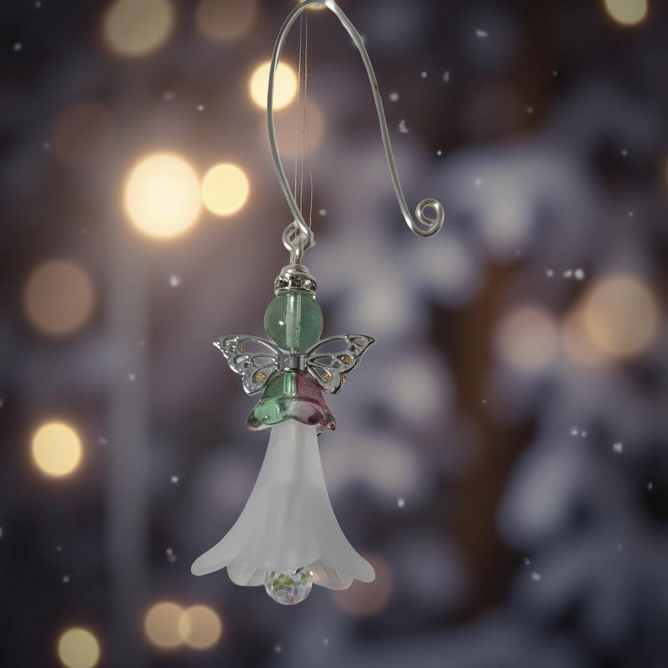 #AngelOrnament #GreenFluorite #GeniusStone #GuardianAngel #HandmadeOnVancouverIsland #VancouverIslandArt #ChristmasOrnament #CrystalHealing #MetaphysicalGifts #SpiritualDecor #ChakraAlignment #HomeDecor #EtsyFinds #UniqueGifts #GlassBell #AcrylicArt #SupportSmallBusiness #HealingCrystals