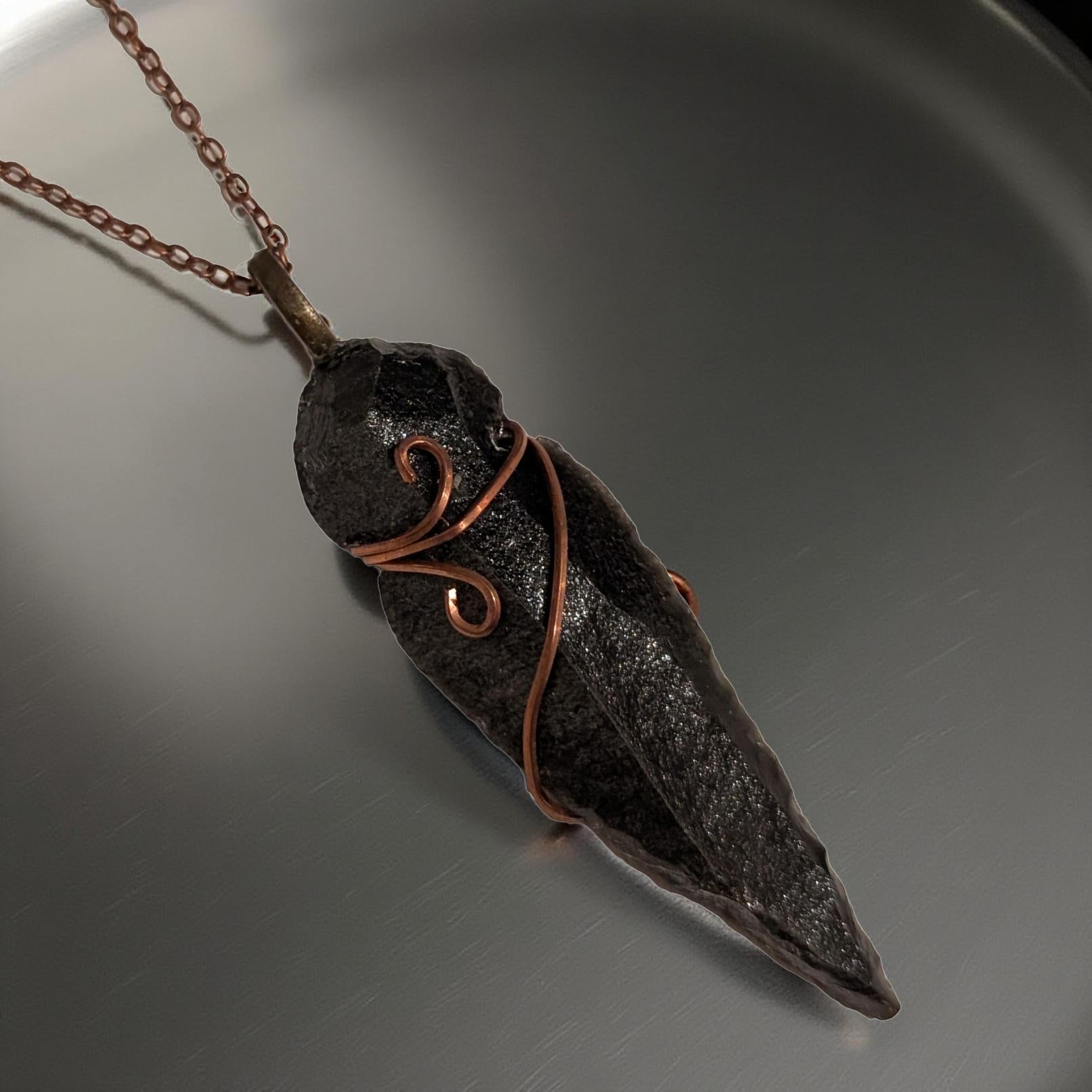 This stunning 3-inch black obsidian arrowhead pendant, suspended from a 22-inch copper-toned chain, comes straight from the artistic heart of Vancouver Island. The raw, protective energy of obsidian shields you from negativity, clears old fears, and unlocks your full potential.