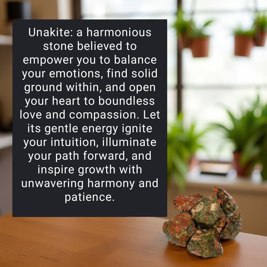 • Unakite: Known as a stone of vision, its blend of forest green and soft pink helps balance the heart and mind—much like a quiet walk through the island woods.