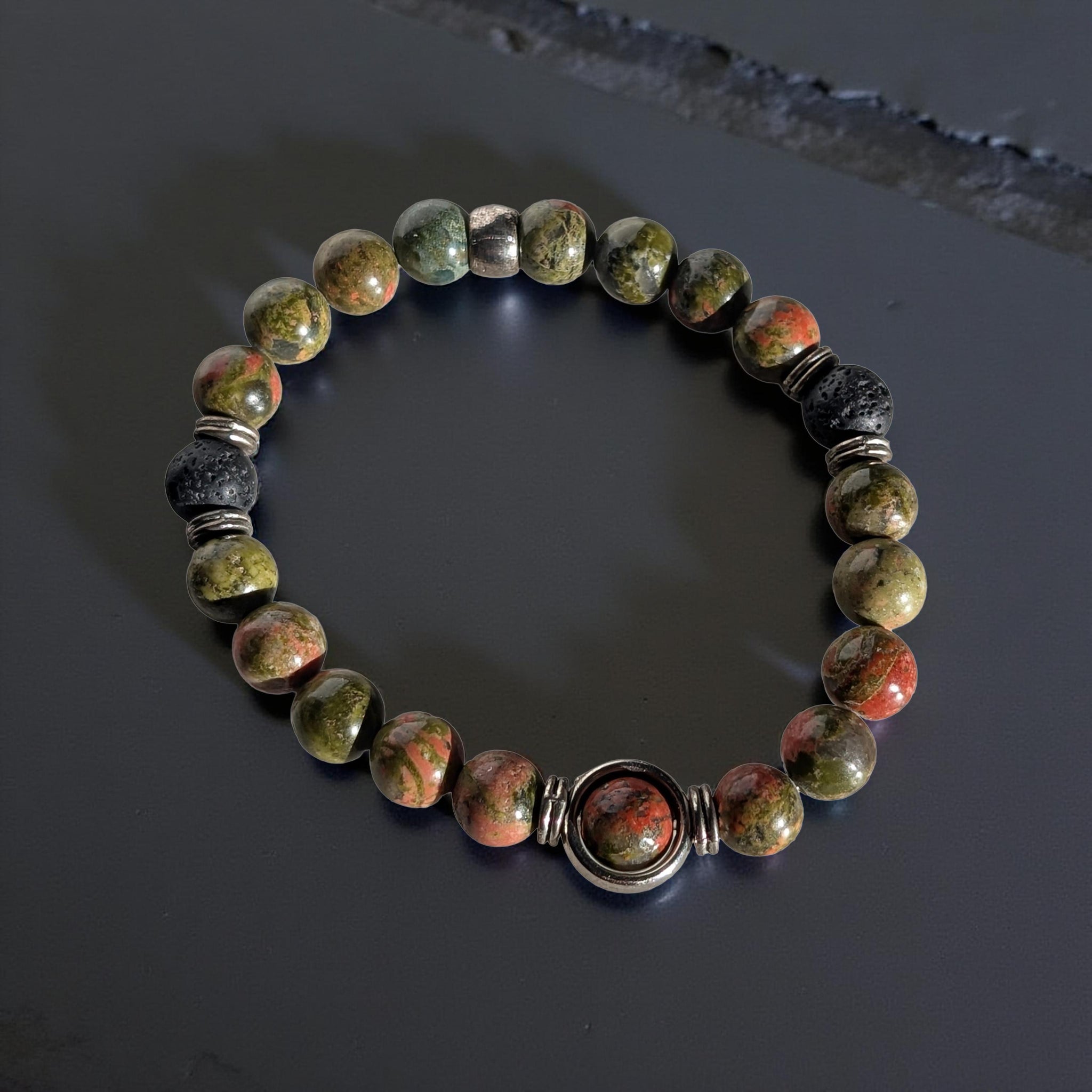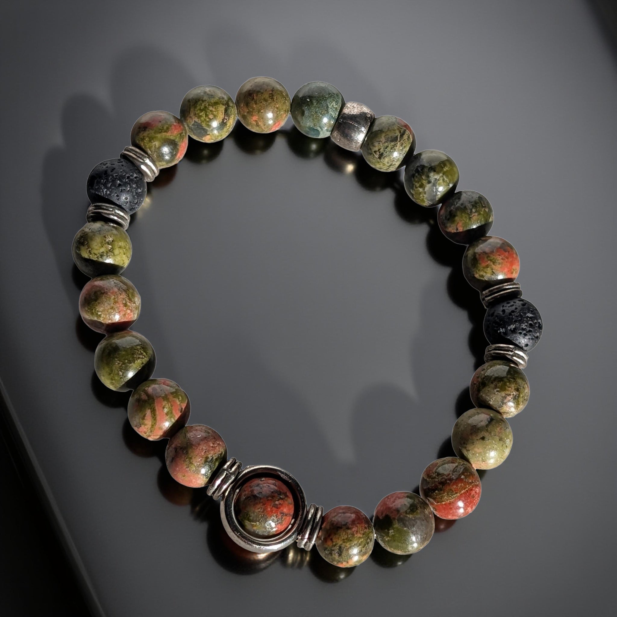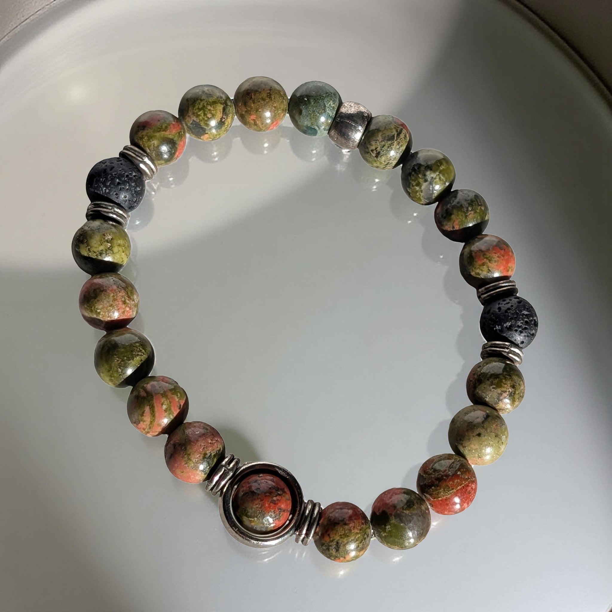 Design: Features a central Unakite focal bead and two lava stones—perfect for diffusing your favorite essential oils.