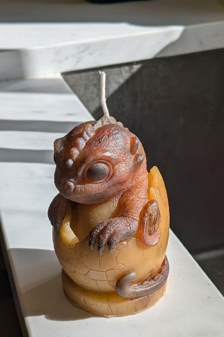 Witness the birth of a legend! This one-of-a-kind, hand-poured candle captures the exact moment a baby dragon emerges from its shell. In many cultures, the dragon symbolizes strength, protection, and the awakening of one's true potential. This piece serves as a beautiful reminder of new beginnings and the power that lies within us all, waiting to emerge.