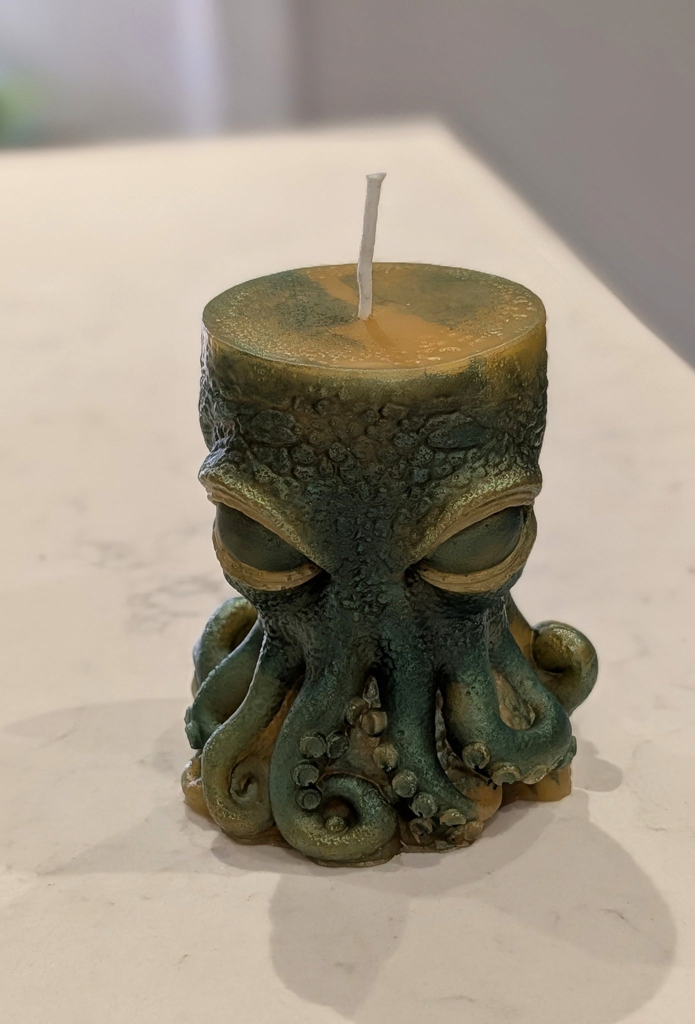 From the crushing depths of the midnight zone comes a piece that is as much a sculpture as it is a light source. This hand-poured three-inch octopus is more than a candle; it is an invitation to the mystical.