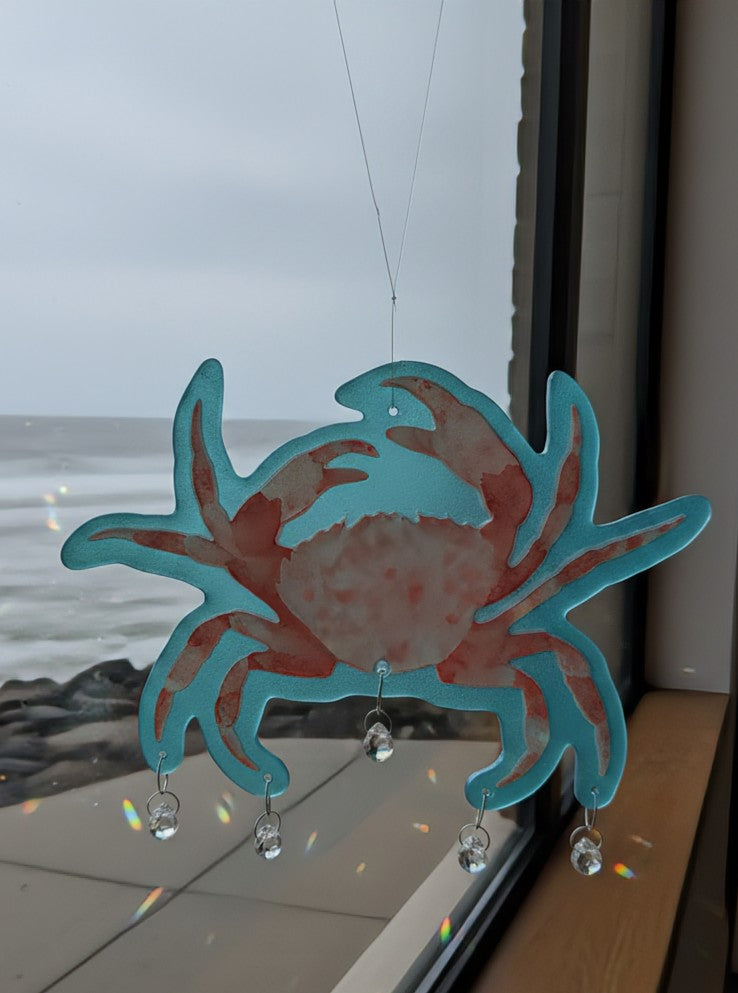 Inspired by the rugged beauty of our Vancouver Island coastline, this handcrafted suncatcher is more than just decor—it’s a tribute to the resilient spirit of the crab. 🦀
