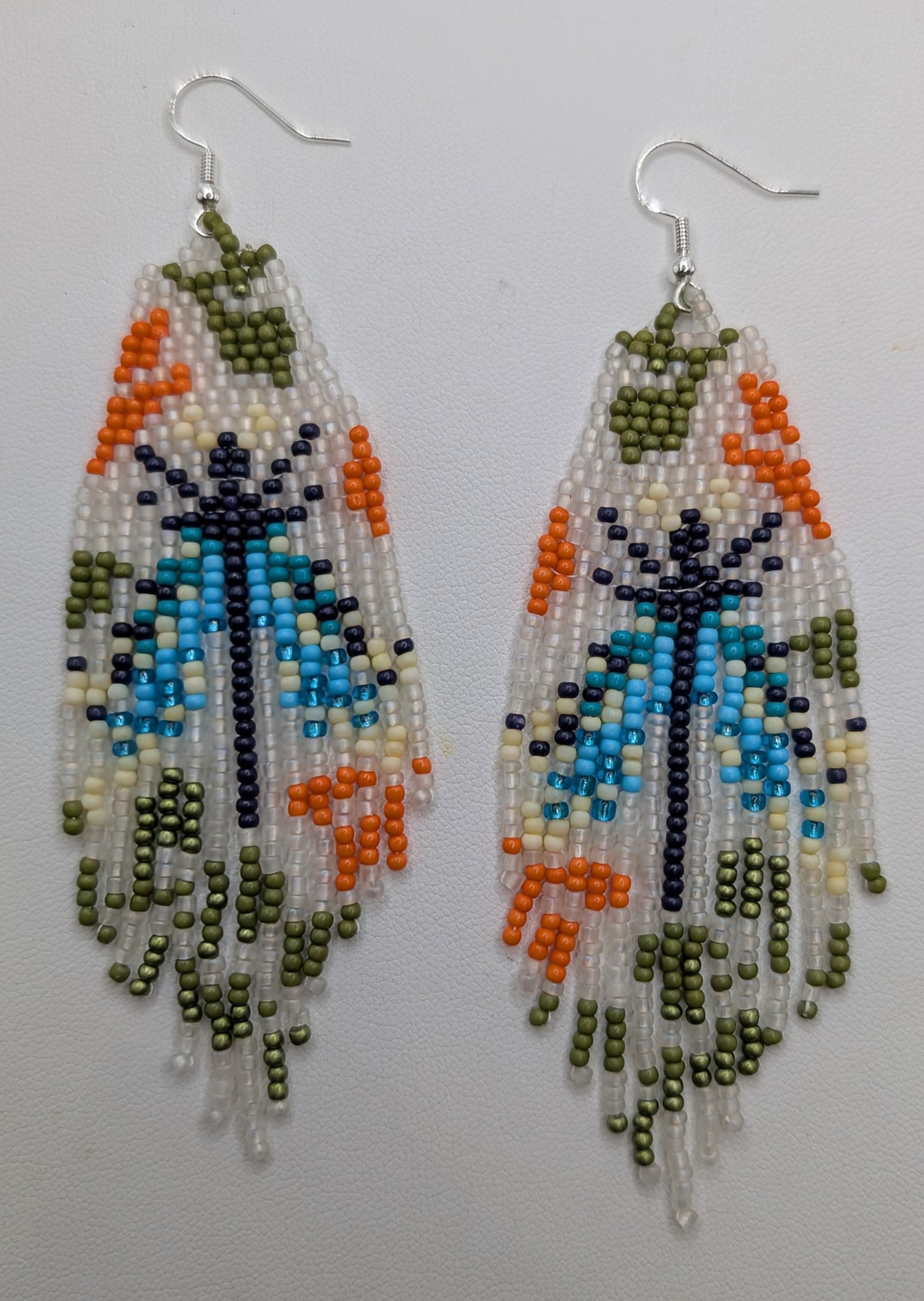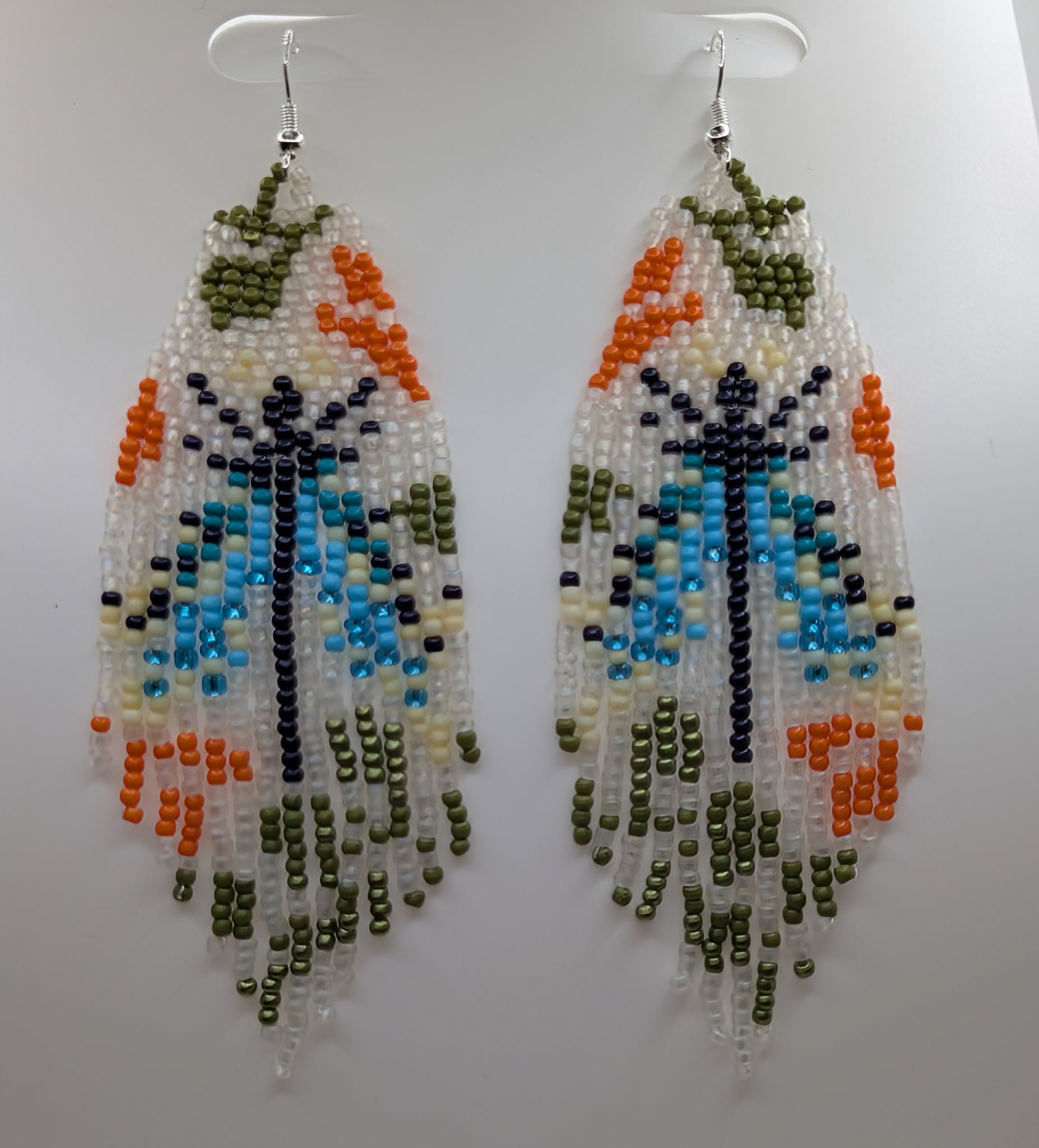 Embrace the profound symbolism of the dragonfly with these majestic 4.5-inch beaded fringe earrings, meticulously handcrafted on Vancouver Island. Fashioned from pure 925 sterling silver hooks, these pieces are more than jewelry; they are wearable talismans.