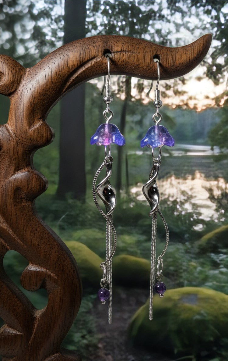 Inspired by the wild waters of Vancouver Island, our Ethereal Tide Drops are a wearable reminder to trust your intuition and find your flow. Handcrafted with ethereal purple glass bells and shimmering silver tentacles that dance as you move, these are designed to be a daily talisman for staying resilient through life’s changes.