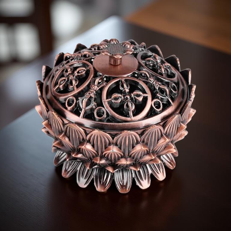 From the stillness of ancient ritual emerges the Vintage Bronze Lotus Incense Burner Bowl (3" x 2", $9). More than just a vessel, this exquisite piece captures the lotus flower's eternal promise of spiritual renewal and pristine grace. Its antique finish speaks of ages past, while the intricate, dome-shaped lid, adorned with symbolic Dharma Wheel cutouts, transforms the rising incense smoke into a sacred, ethereal drift. It is a tactile artifact for contemplation—a beautiful, functional monument to purity and meditative practice.