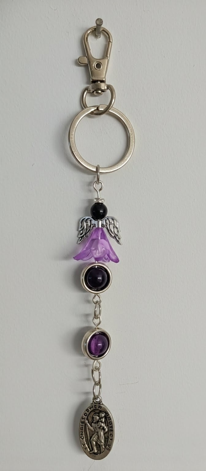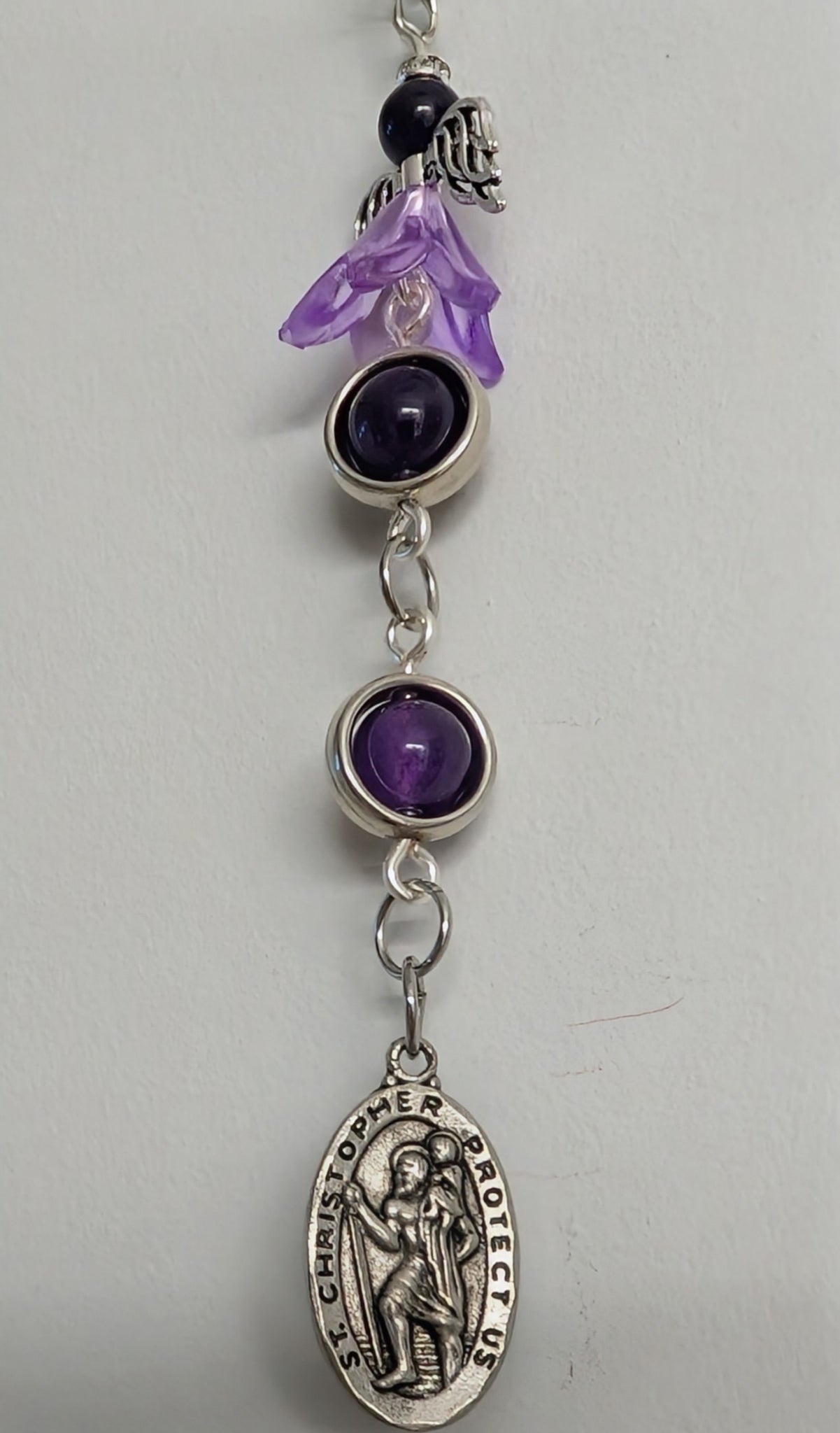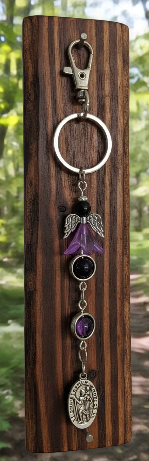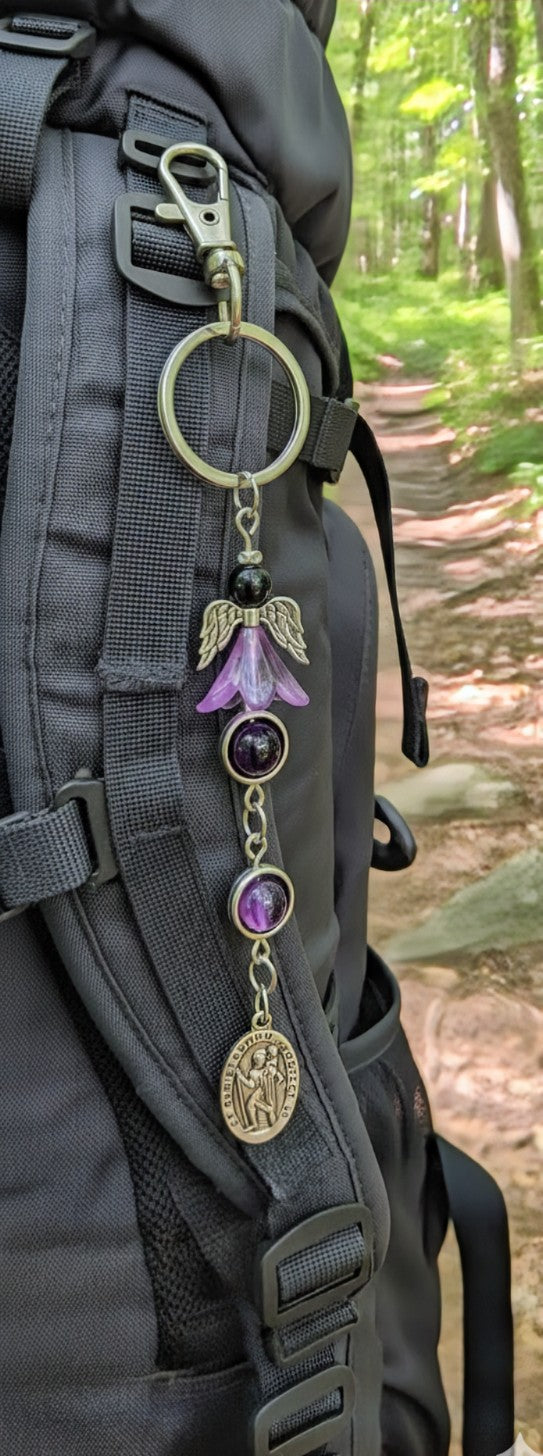 #handmadevancouverisland #echoofastone #guardianangel #stchristopher #amethystjewelry #travelersprotection #oneofakind #artisanmade #spiritualjewelry #parksvillebc #vanislelife #metaphysical #crystalhealing #travelgear #backpackcharm #handmadeincanada #sacredjourney #protectiontalisman #wayfarer #artisanmaker