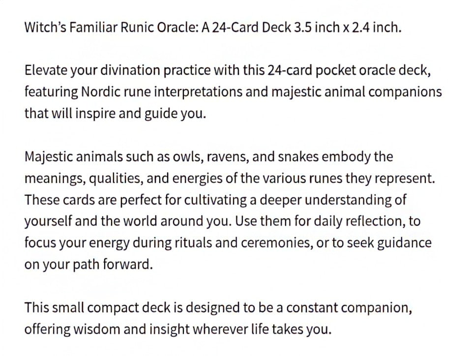 Witch's Familiar Runic Oracle: A 24-Card Deck 3.5 inch x 2.4 inch.