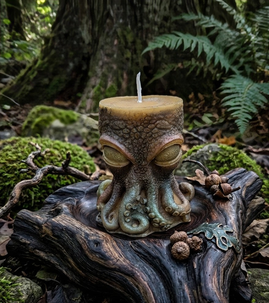 Standing 3 inches tall, each piece carries the soft, sun-warmed scent of the meadows into the mysteries of the sea. The true artistry lies in the meticulous hand-painting, where iridescent copper and sea-haze tones shift as you move, echoing the way light plays upon the Parksville tide pools. The hand-poured wax captures the rugged, weathered texture of the mantle and the graceful reach of the tentacles, ensuring no two are ever the same.