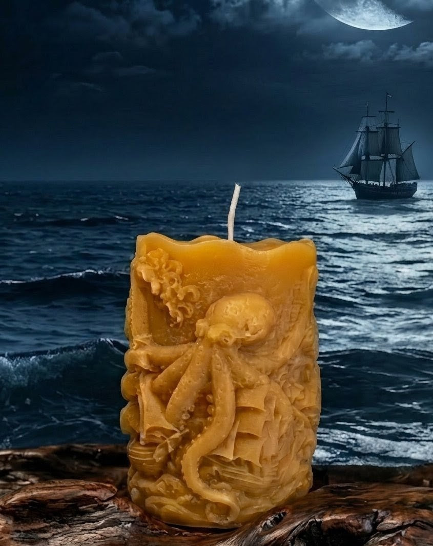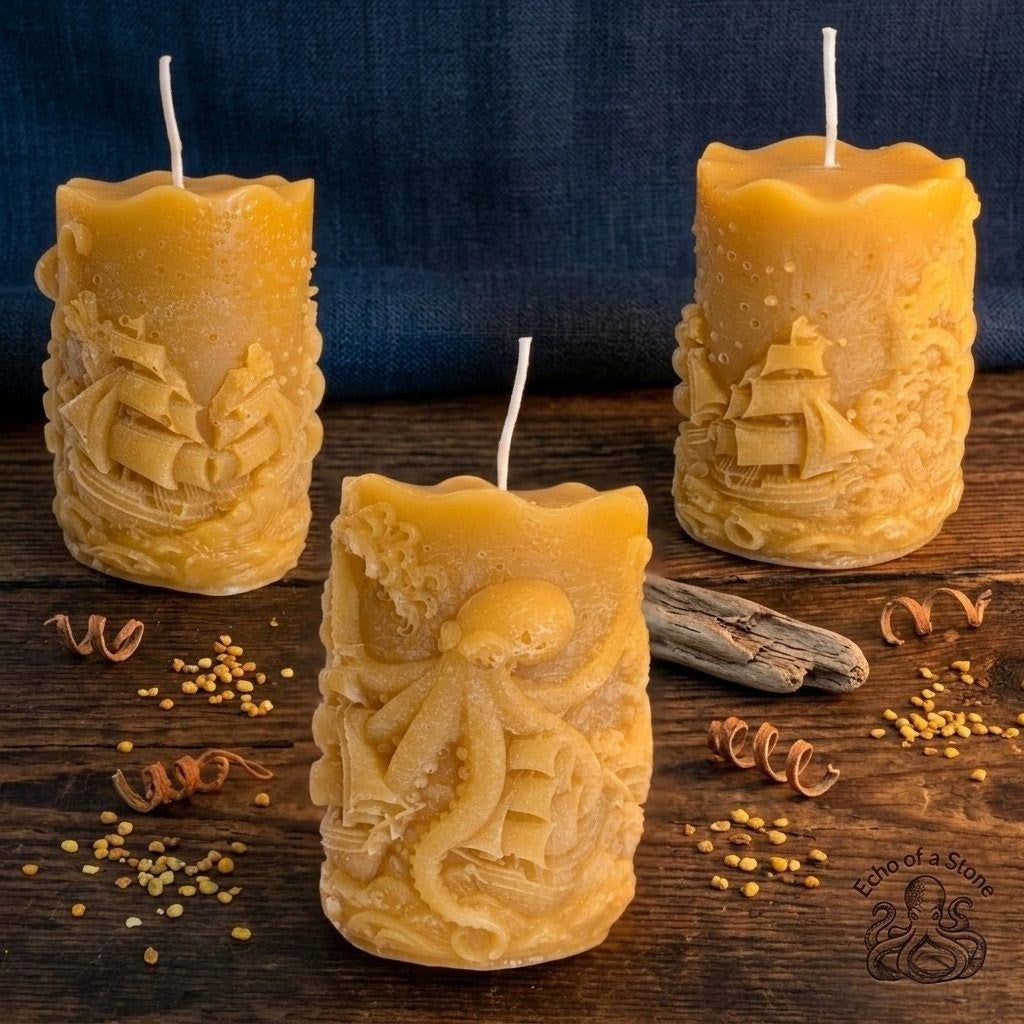 #EchoOfAStone #OrganicBeeswax #BeeswaxCandles #Kraken #NauticalDecor #HandmadeCandles #OctopusArt #Symbolism #Transformation #Renewal #BeeswaxArt #SeasTheDay #OceanDecor #ArtisanMade