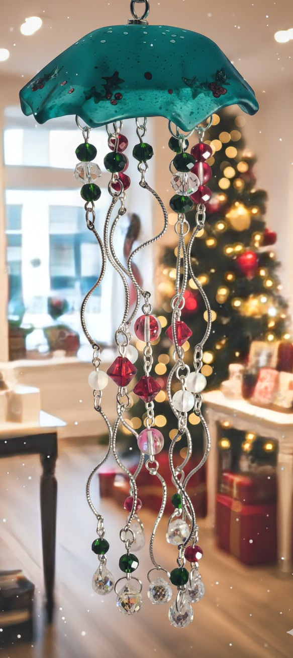 #HollybellShimmer #Suncatcher #AngelAuraQuartz #JellyfishArt #RecycledGlass #VancouverIsland #ChristmasOrnament #Wellbeing #Handcrafted #CoastalInspired