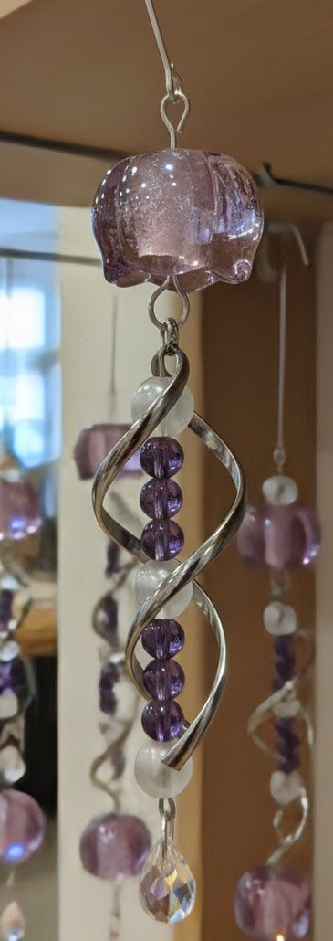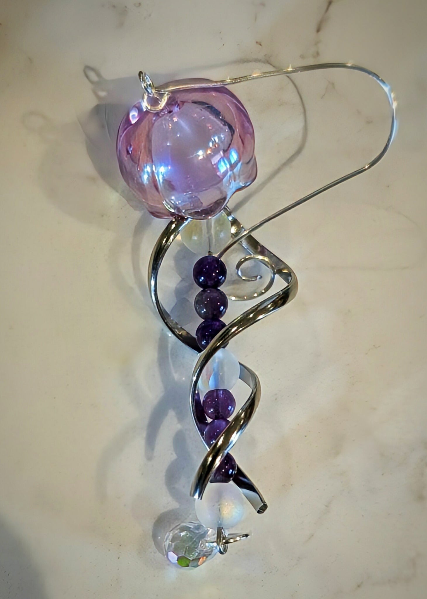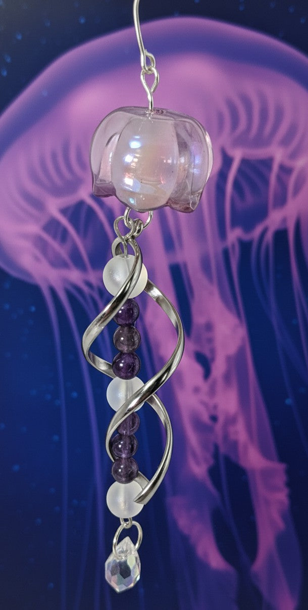 #JellyfishArt #Suncatcher #HandmadeOnVancouverIsland #CrystalMagic #Amethyst #AngelAuraQuartz #OceanDecor #SpiritualDecor #ShopLocal