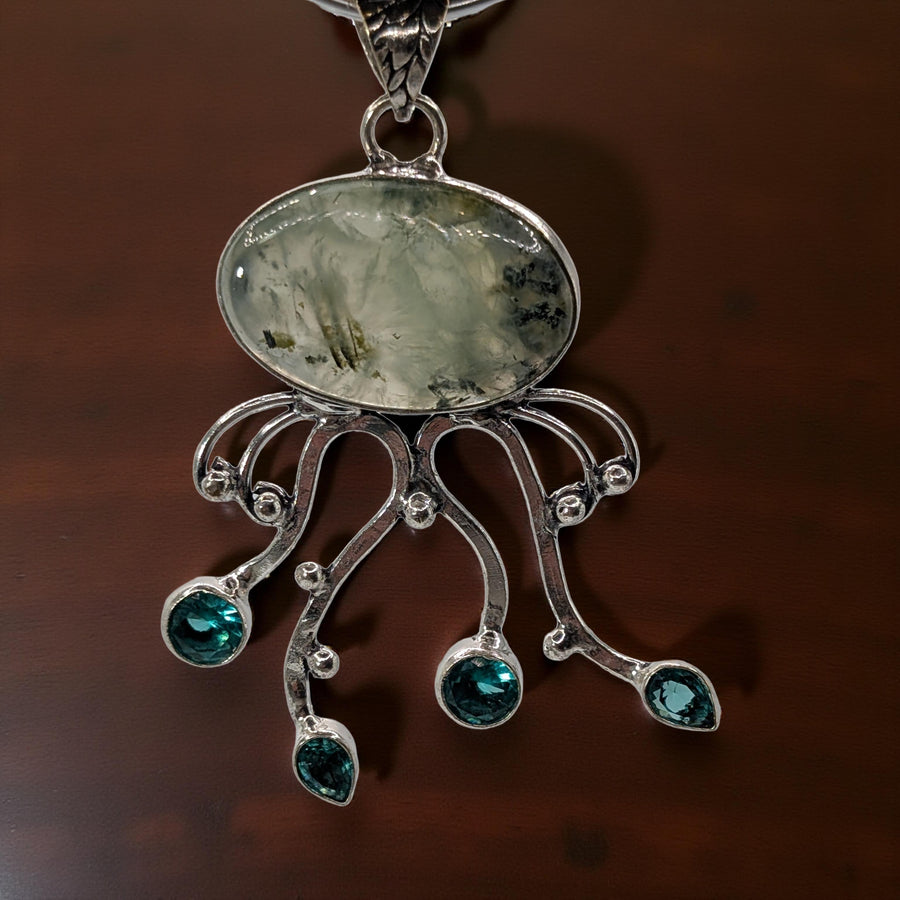 #JellyfishPendant #PrehniteJewelry #LondonBlueTopaz #OceanJewelry #DeepSeaJewelry #HandcraftedJewelry #ArtisanJewelry #StatementPiece #EtherealJewelry #LuxuryPendant #GemstoneJewelry #CollectorPiece #AdaptabilityTalisman #SterlingSilver