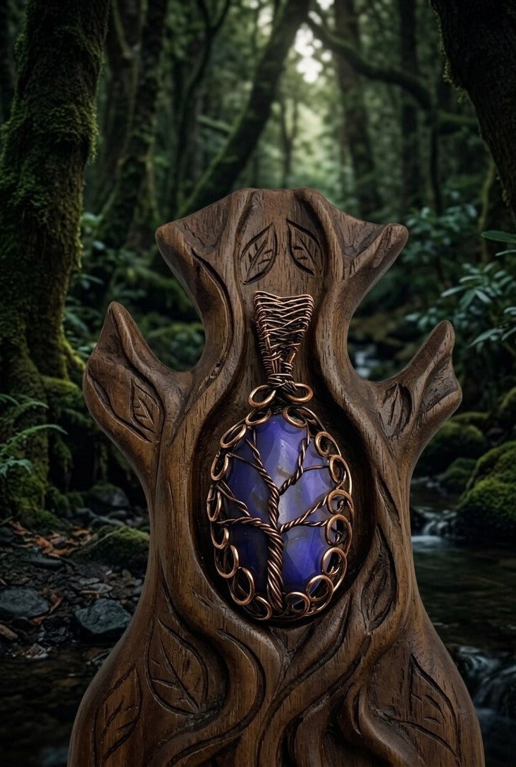 More than a pendant, this is a wearable sanctuary. At its center lies a 2.3-inch Botswana Agate, cast in depths of velvet purple that act as a portal to your inner calm. It is held fast by the limbs of a meticulously sculpted copper tree, its weathered patina reflecting the grit and grace of a life well-lived.
