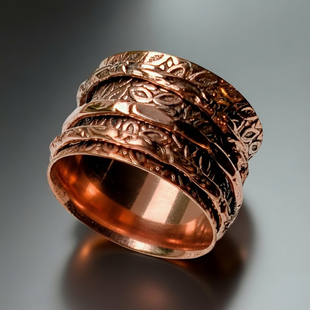#SpinnerRing #SterlingSilver #CopperJewelry #AmethystRing #BohoStyle #StatementRing #ArtisanJewelry #HandmadeJewelry #ElegantStyle #EnergyHealing #HolisticWellness #CrystalHealing #AmethystEnergy #MindfulnessJewelry #AnxietyRelief #MeditationRing #PositiveVibes #Metaphysical