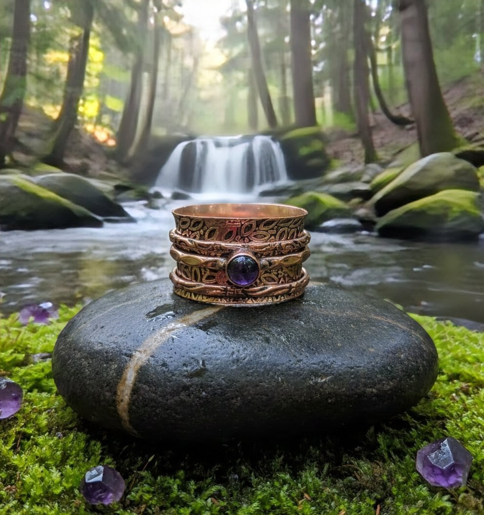 #amethyst #spinnerring #holistic #sterlingsilver #meditationring #mindfulness #jewelrywithmeaning #spiritualjewelry #artisanjewelry #innerpeace #crystalhealing #bohostyle #fidgetjewelry #vancouverisland #echoofastone