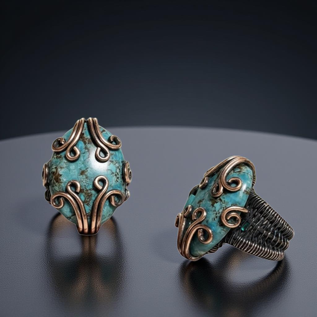 #echoofastone #vancouverislandmade #parksvillebc #wirewrappedjewelry #turquoisering #artisanmade #metaphysicaljewelry #handmadejewelry