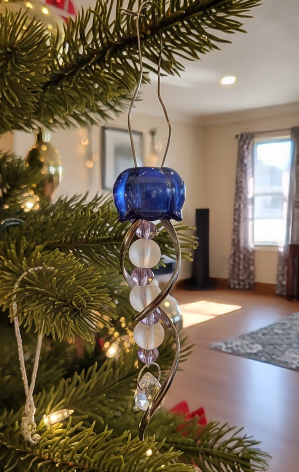 Like a dancer in the deep, the jellyfish embodies graceful, fluid adaptability, inspiring you to move with the seamless rhythms of life, navigating all currents with effortless ease. Hang it in a sunlit window or as a sparkling focal point year-round.