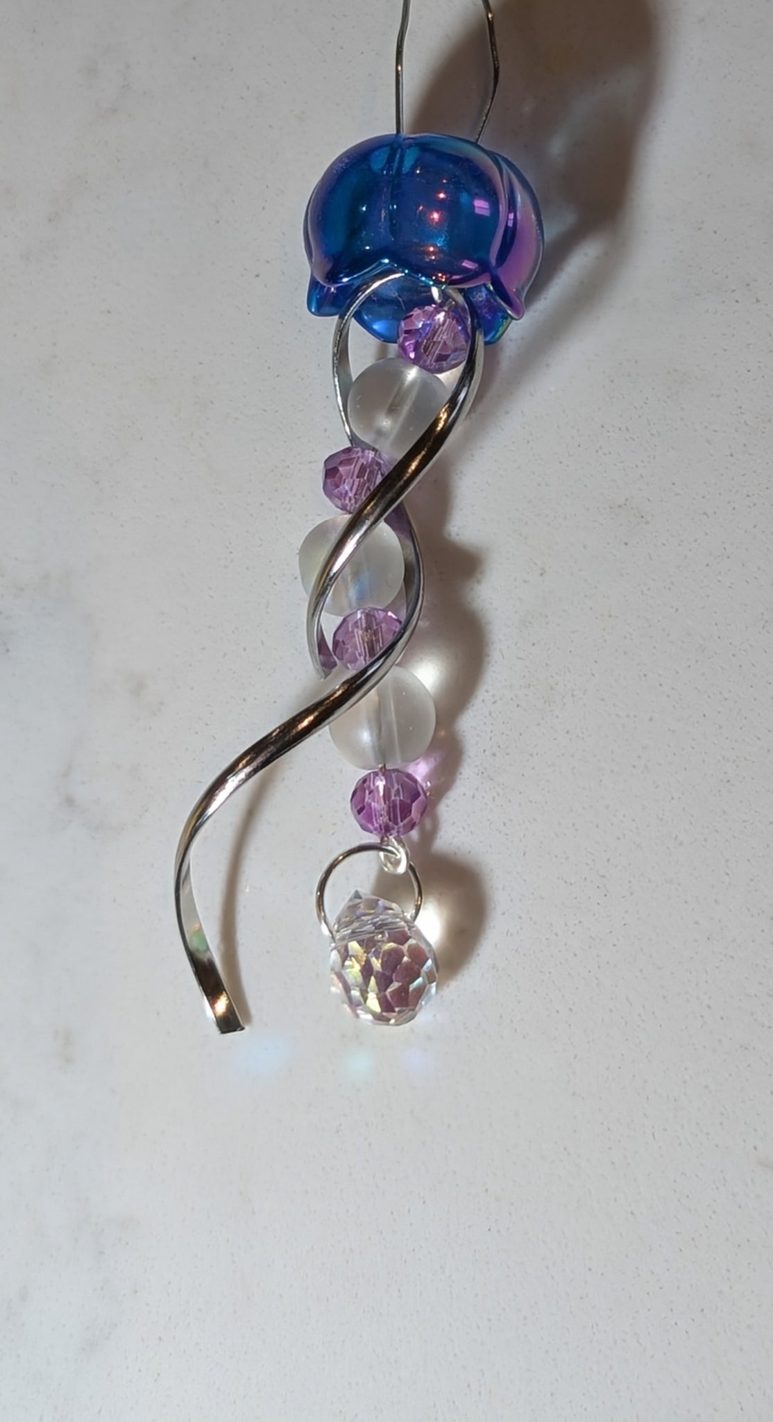 #JellyfishArt #Suncatcher #AngelAuraQuartz #HandmadeArt #VancouverIsland #OceanInspired #IridescentGlass #HealingCrystals #PositiveVibes #WindowDecor #SpiritualDecor #EmeraldGreen #OilSlick #TranquilSpace #SmallBusiness