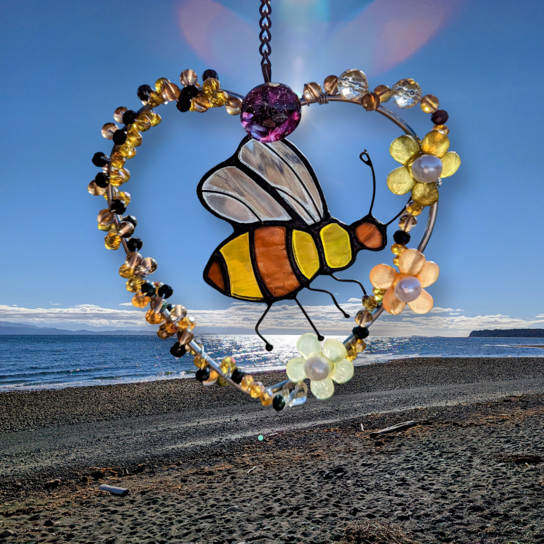 Sun Catcher- Stained Glass Bee in heart -Echo of a Stone