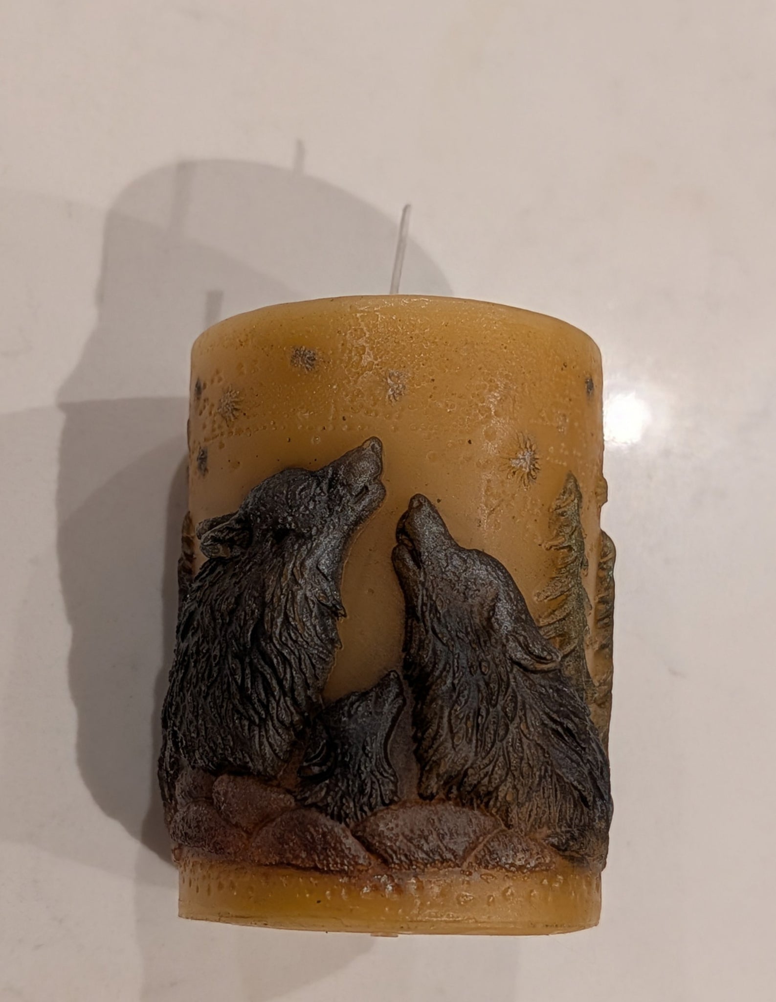 #echoofastone #vancouverisland #parksville #madeinbc #handmadeinvancouverisland #organicbeeswax #wolfspirit #wolfpack #wolfdecor #beeswaxcandles #wildandfree #vancouverislandmaker #handpainted #metaphysical #natureinspired