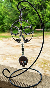 Hangman Double Skull, Aromatherapy, Black Aura Quartz, Sun Catcher on stand